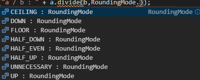 System.out.println("a / b : " + a.divide(b,6,RoundingMode.HALF_EVEN));