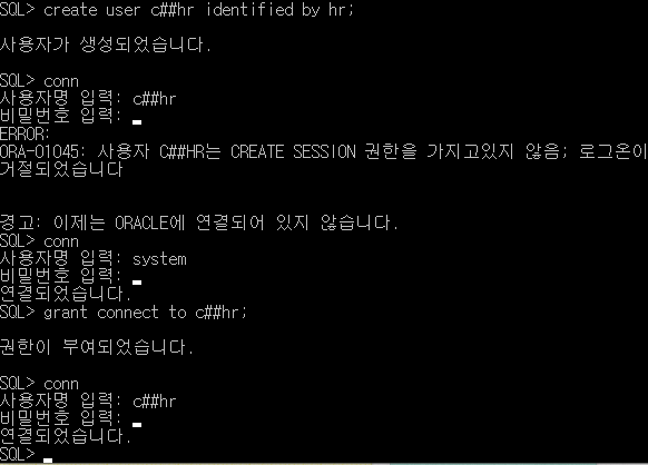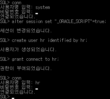 그리고 hr계정을 생성하려는데 생성이 안된다..