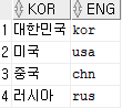 // 첫번째 row 인 대한민국이 조회 된다.