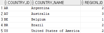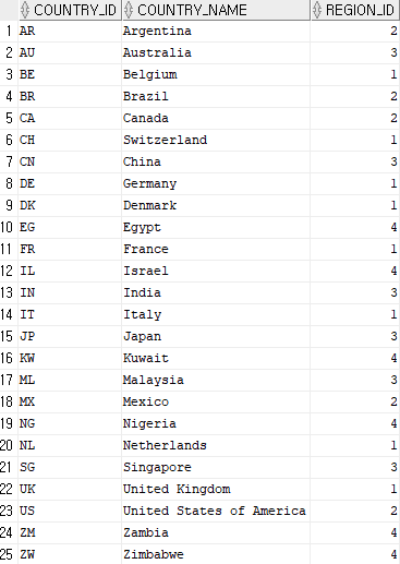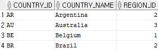 일반적으로 COUNTRIES 테이블안에 아래와 같은 데이터가 있을때