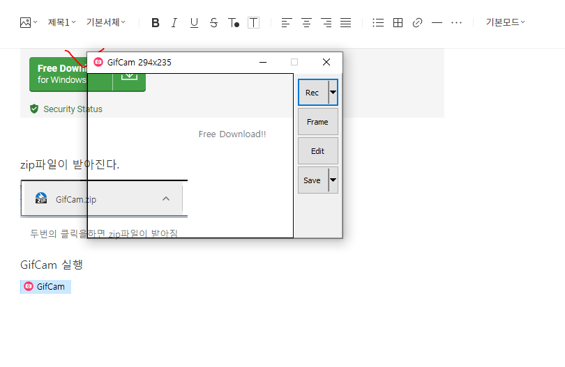 먼저 아래 페이지에서 GifCam을 다운로드 받는다.
