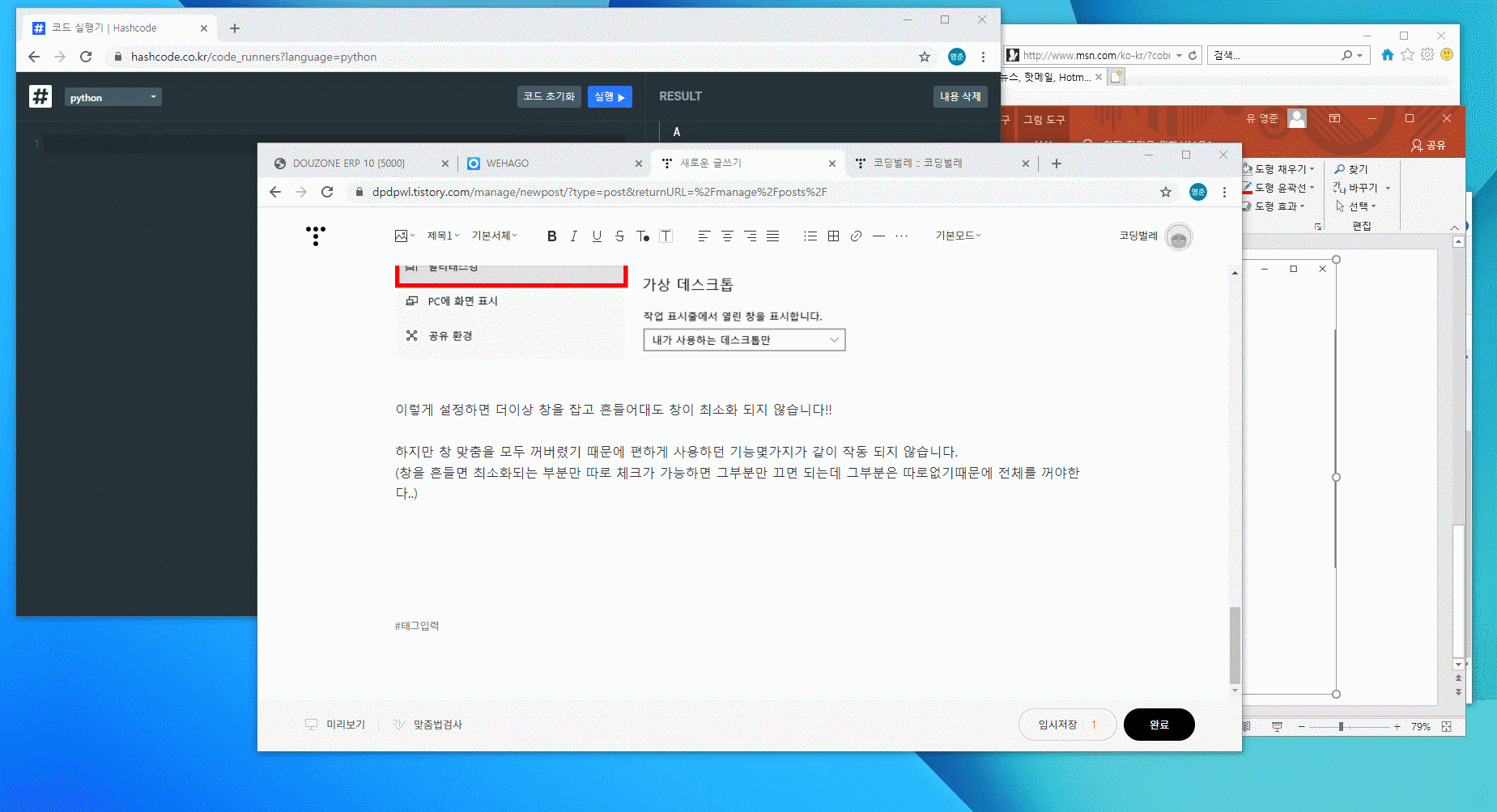 창을 옮겼을뿐인데 모든 창이 최소화되면 개빡칩니다.