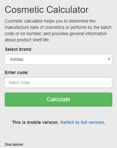 Cosmetic Calculator - Mobile version