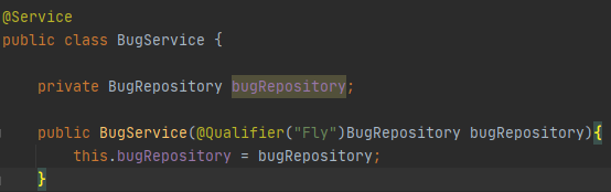 이렇게 생성자로 어떤 객체를 받아서 BugRepository를 생성해주면 의존성을 주입 받았다고 할 수 있다.